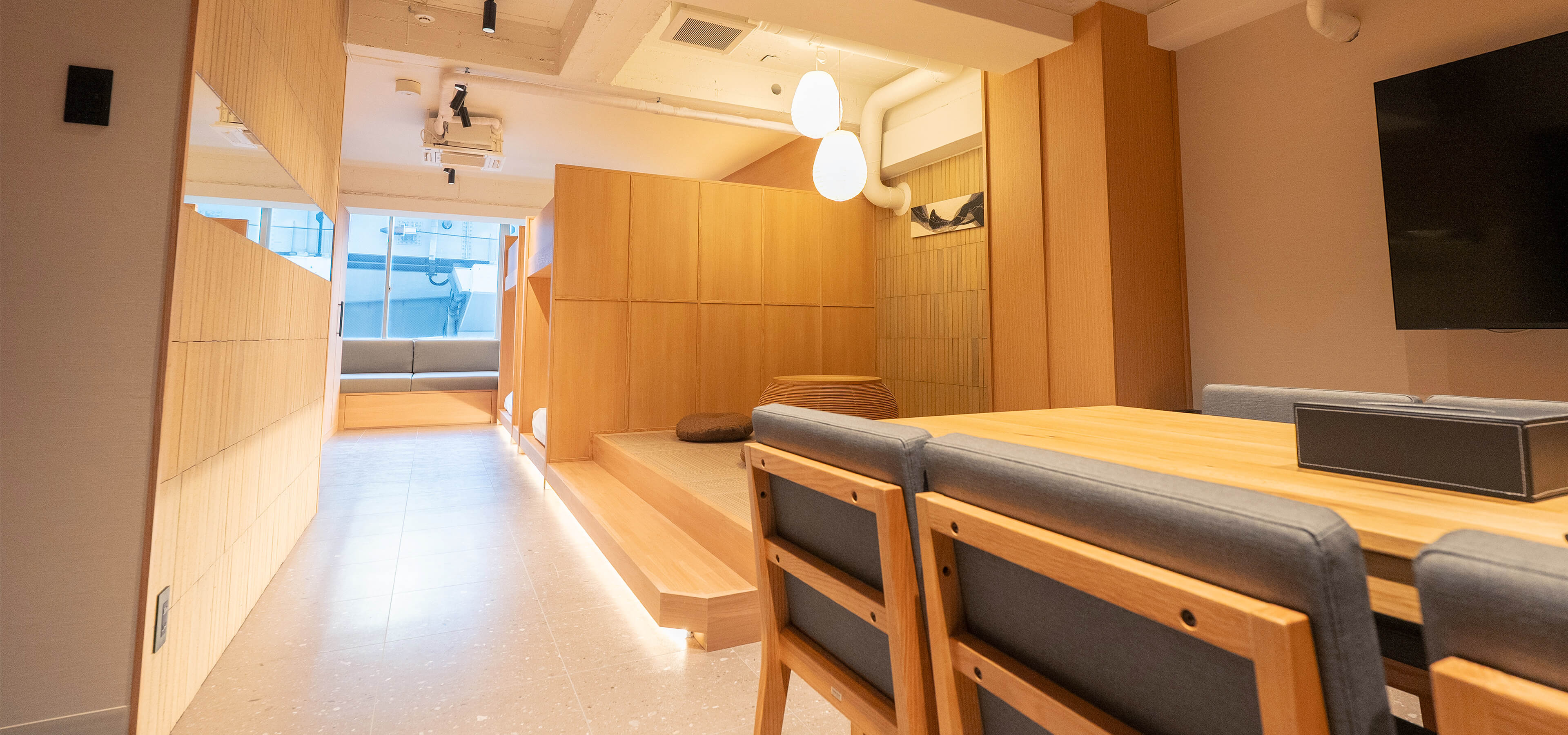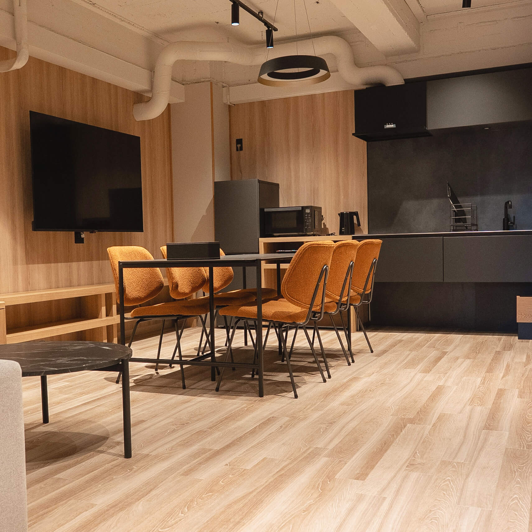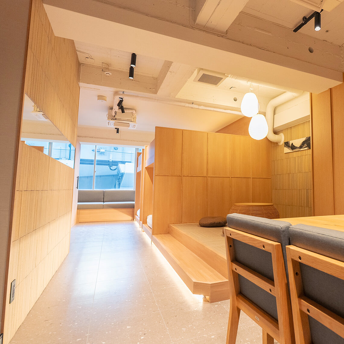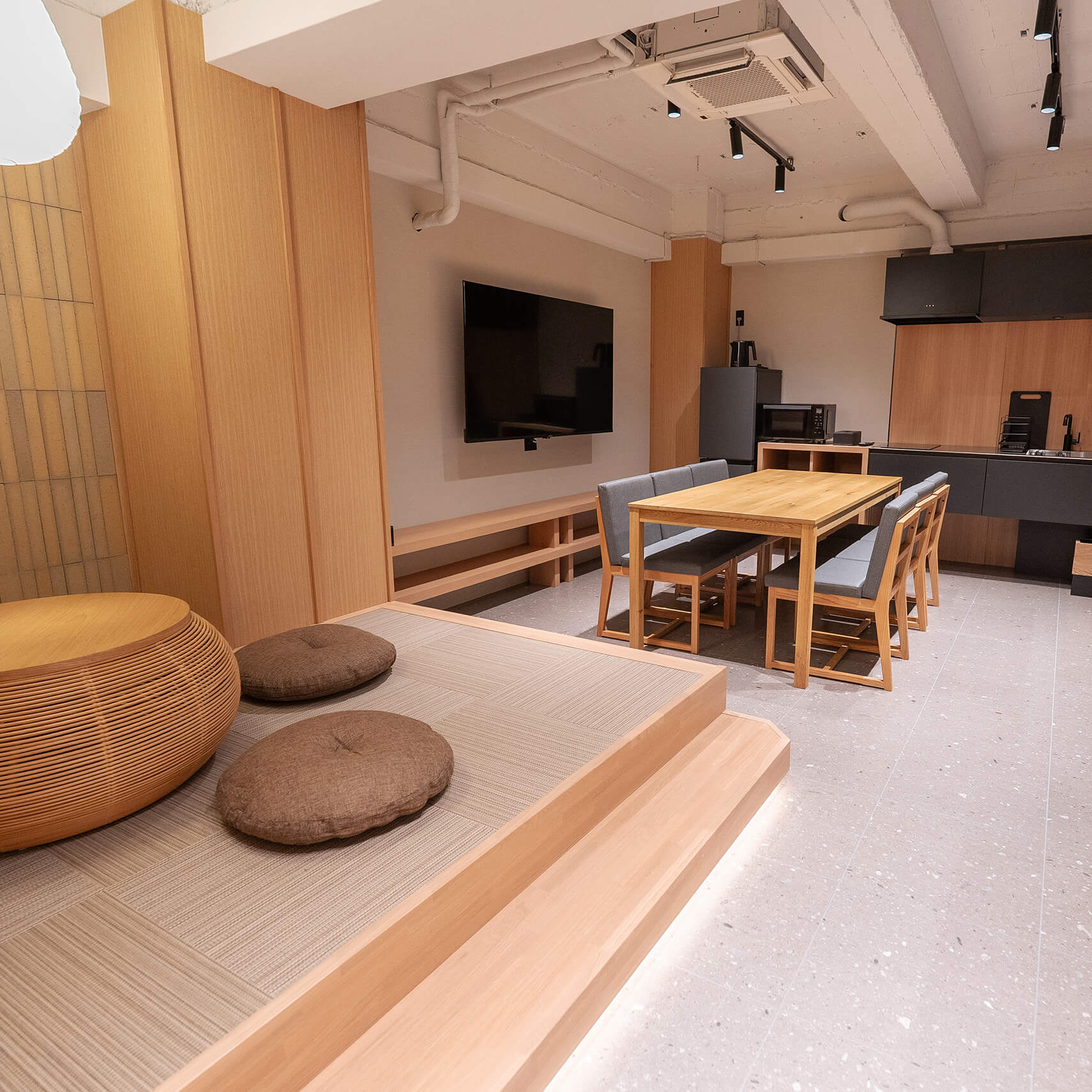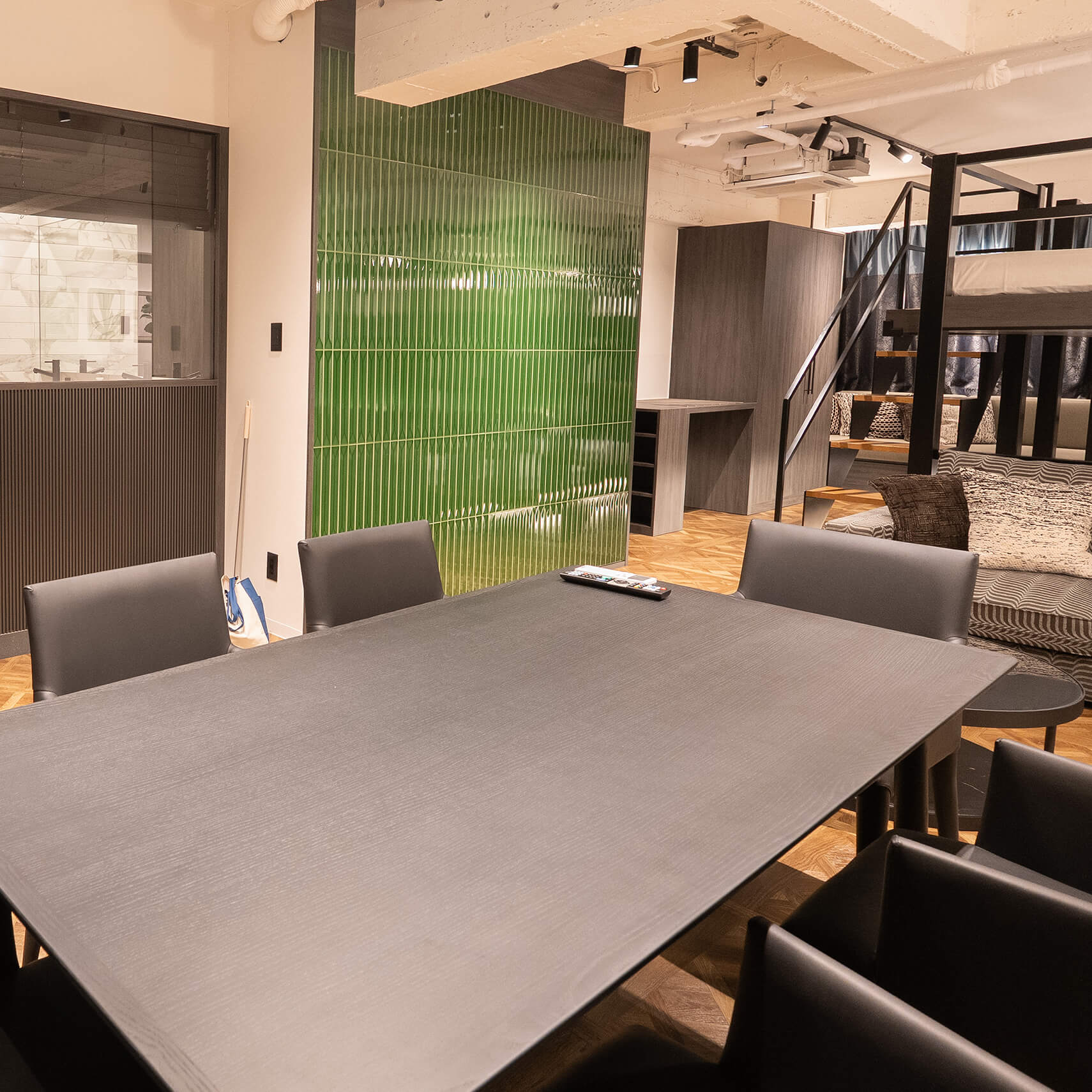 501号室は緑のタイル壁と明るい木目床のお部屋。
