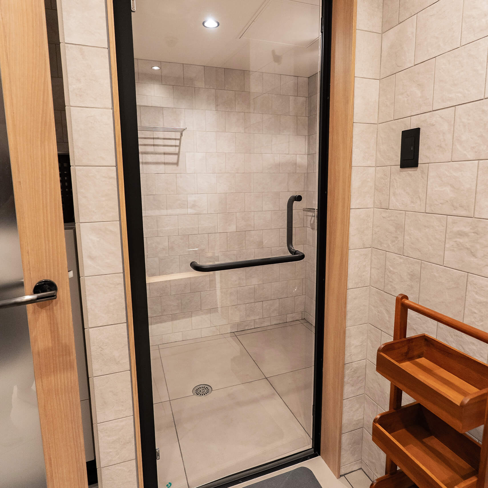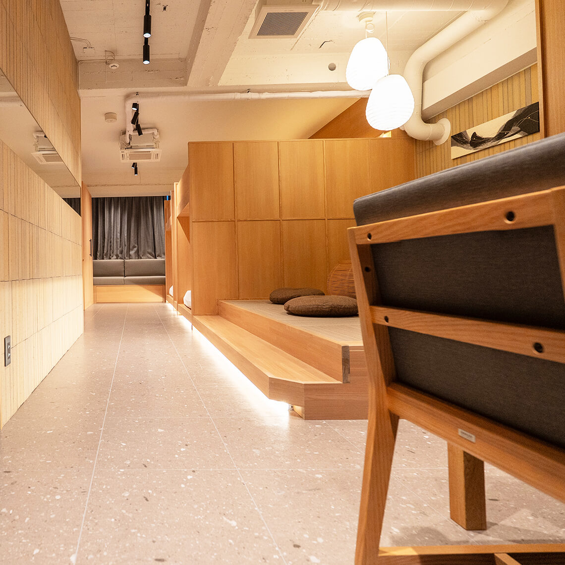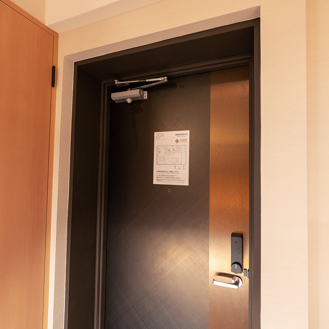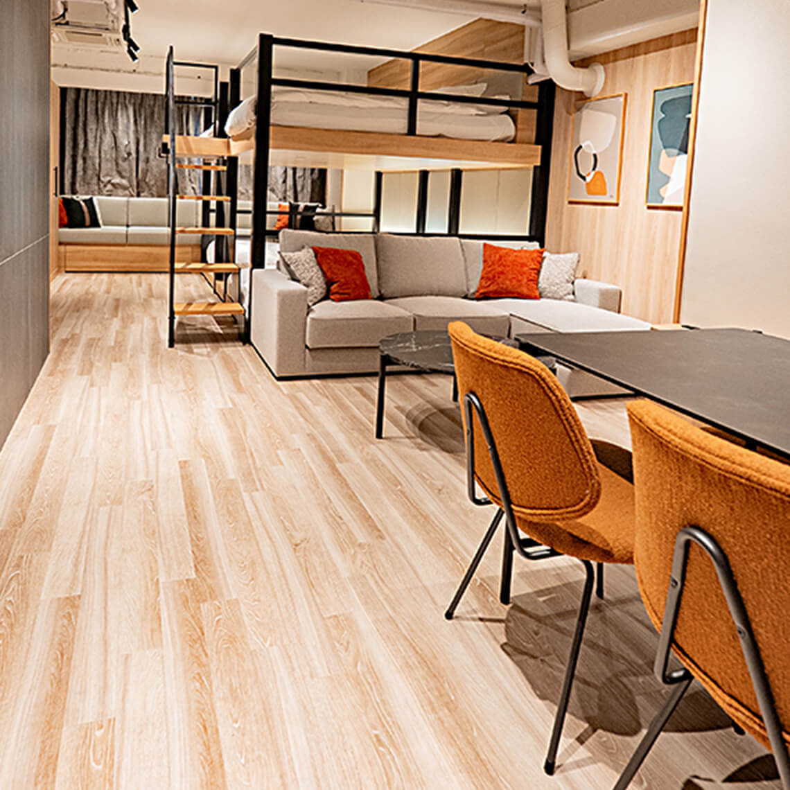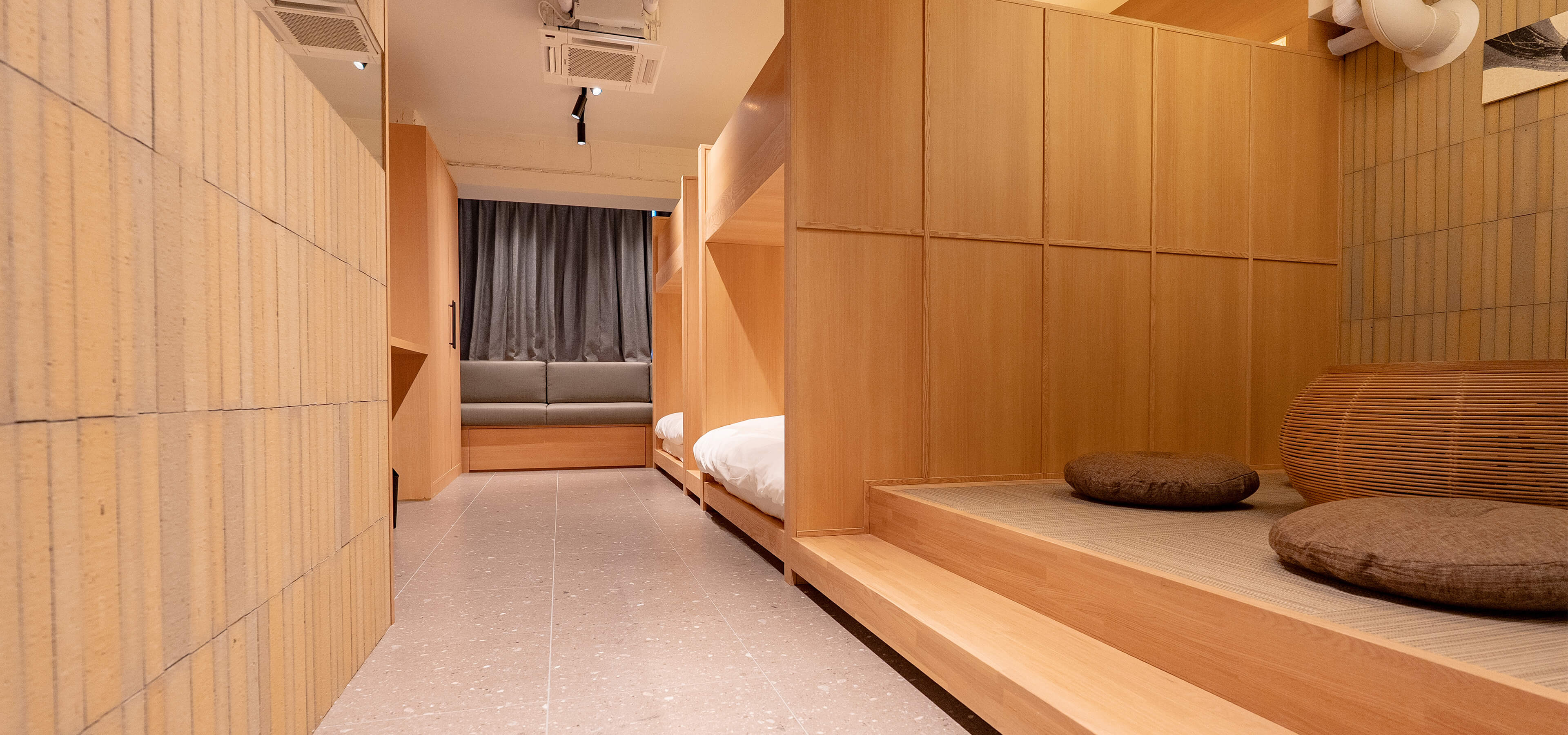 501号室は緑のタイル壁と明るい木目床のお部屋。