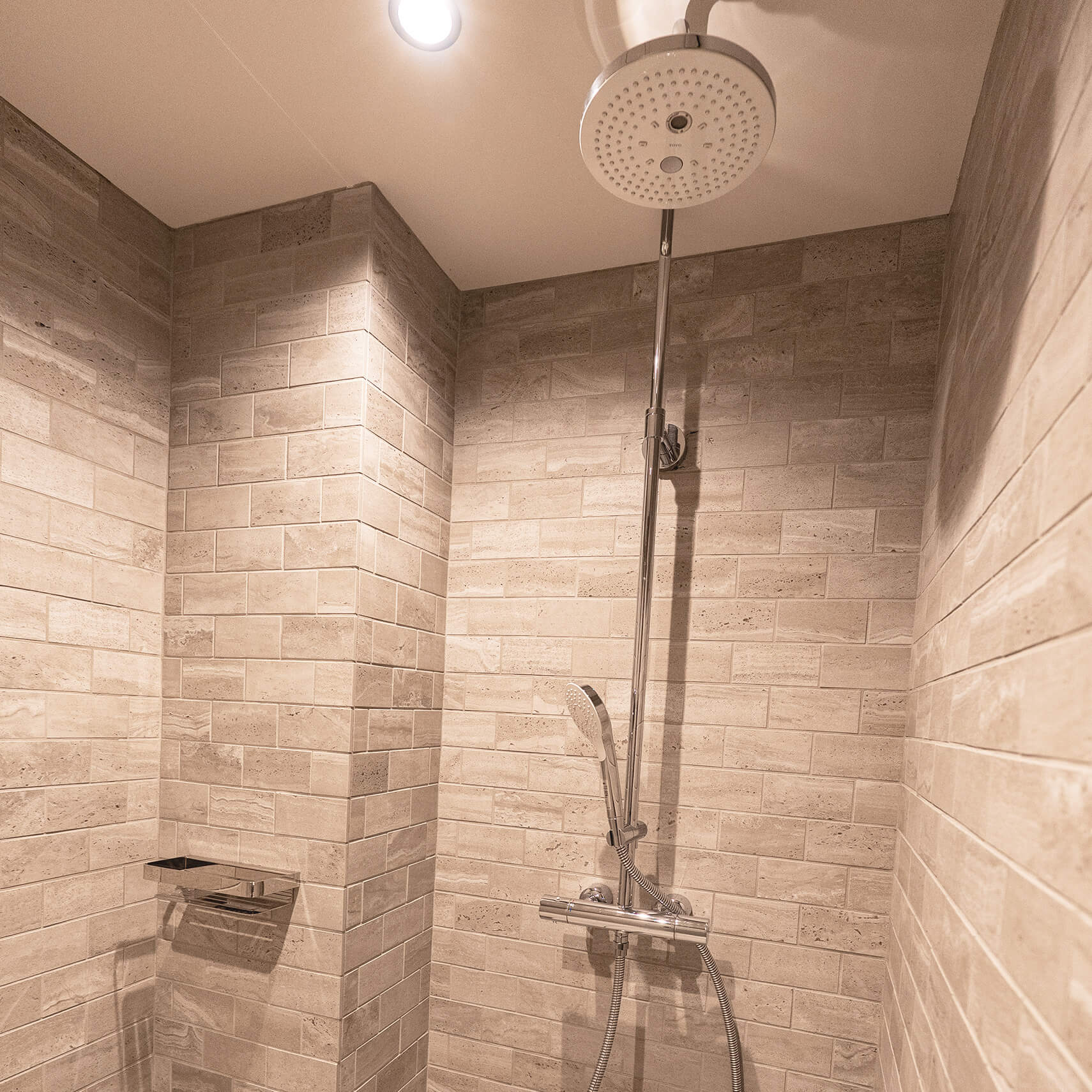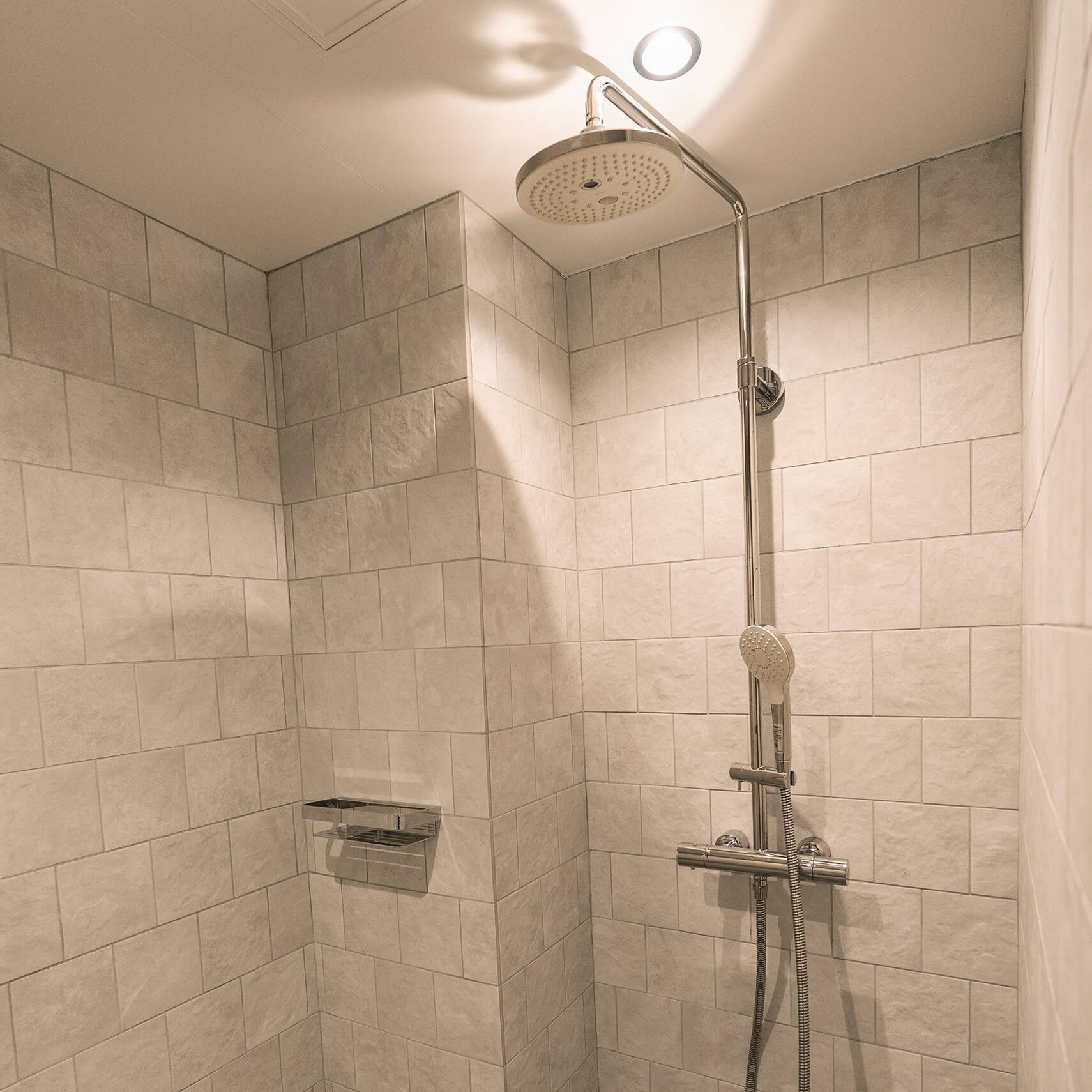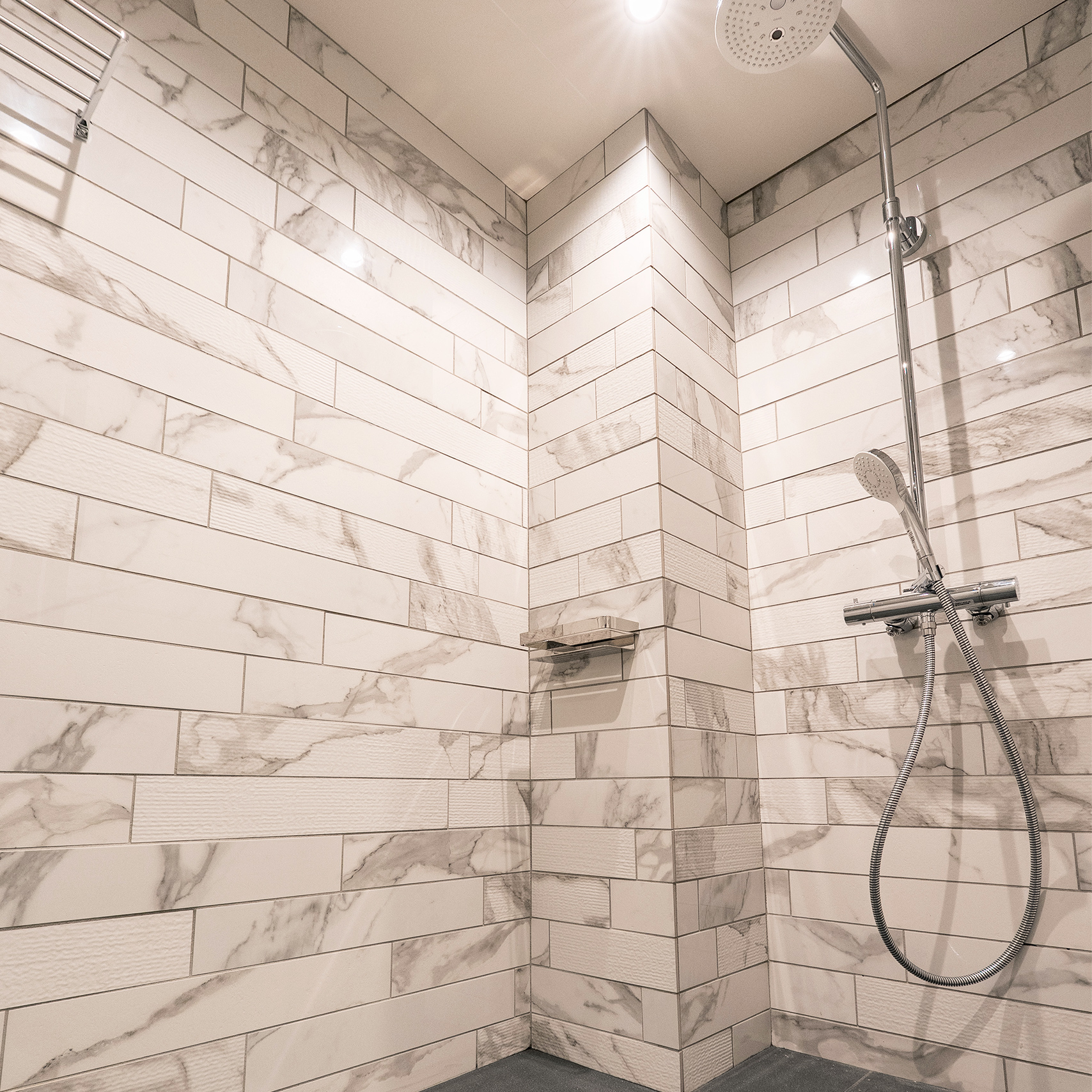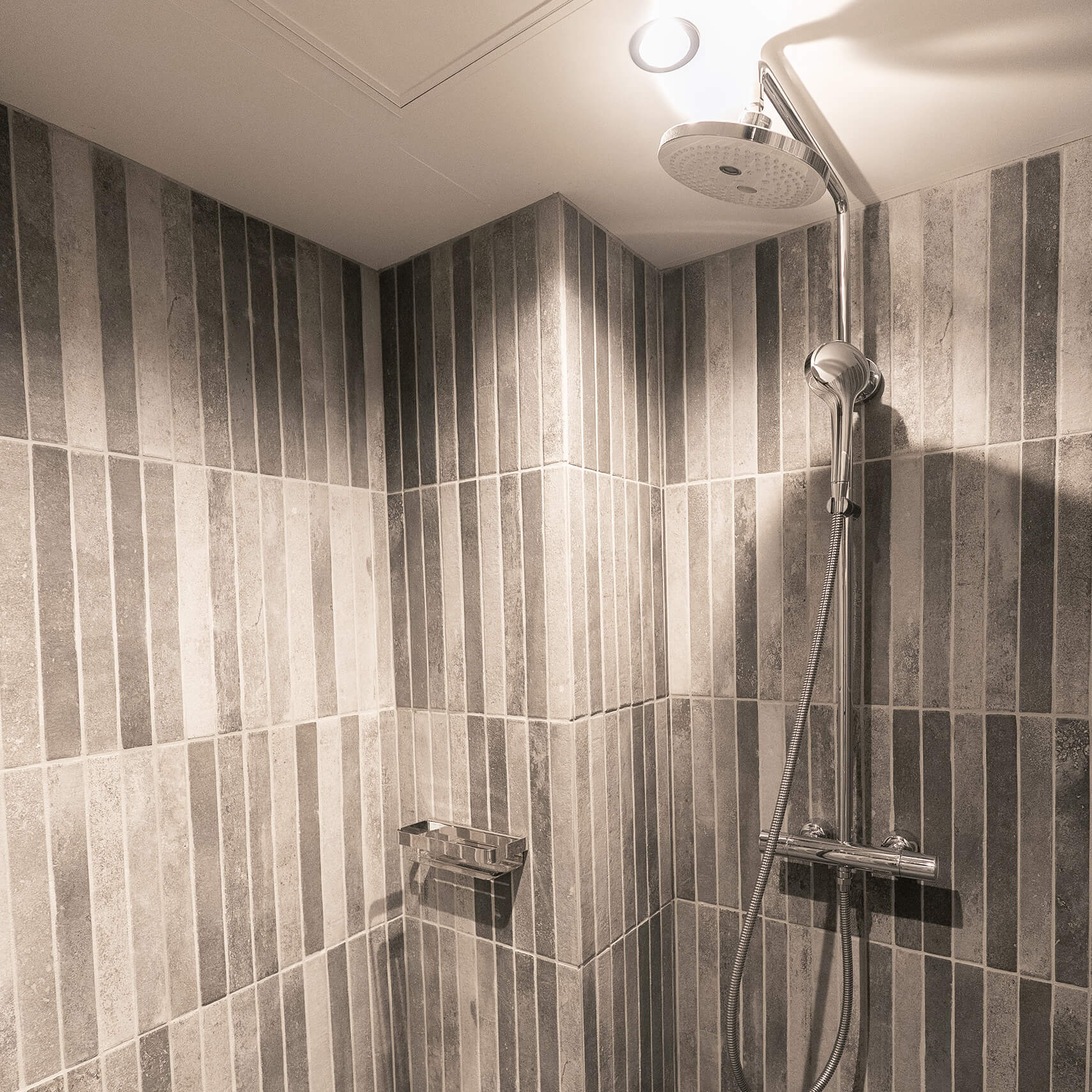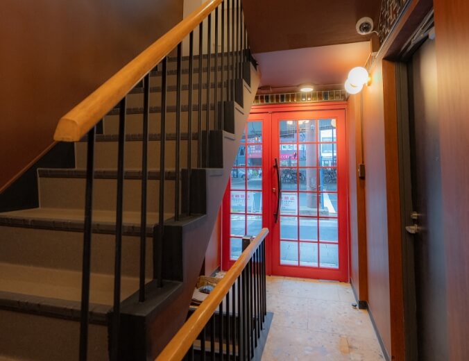 501号室は緑のタイル壁と明るい木目床のお部屋。
