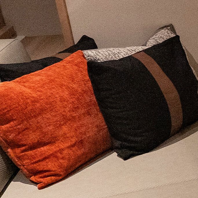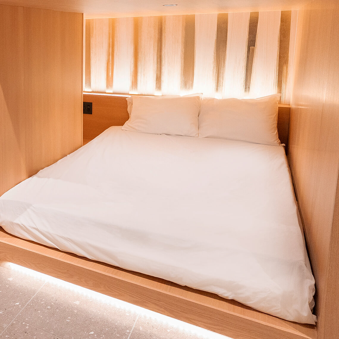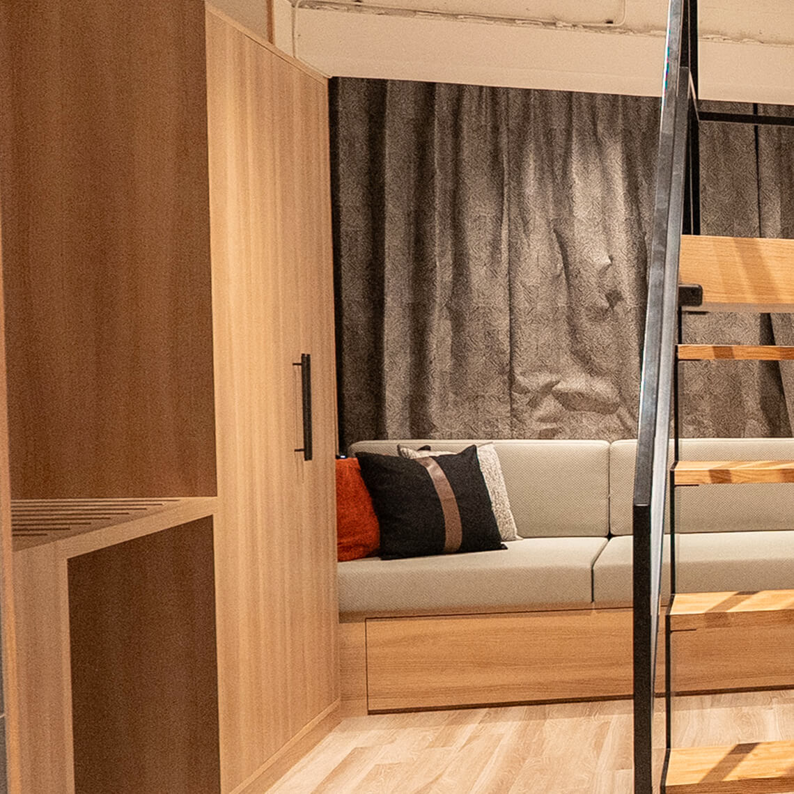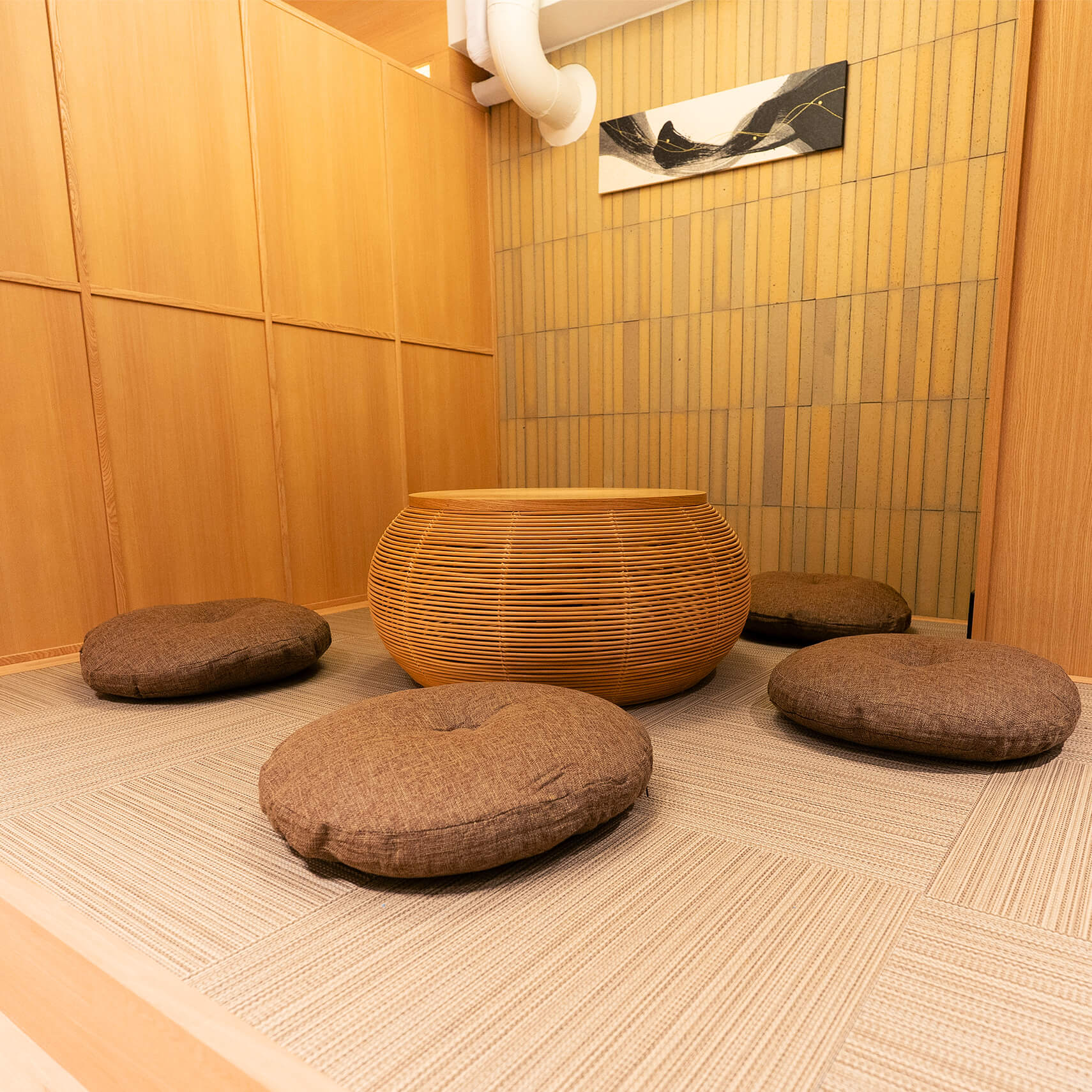 ベットの両脇にはソファーとクッションがあり、大人数でもゆったりと寛げます。