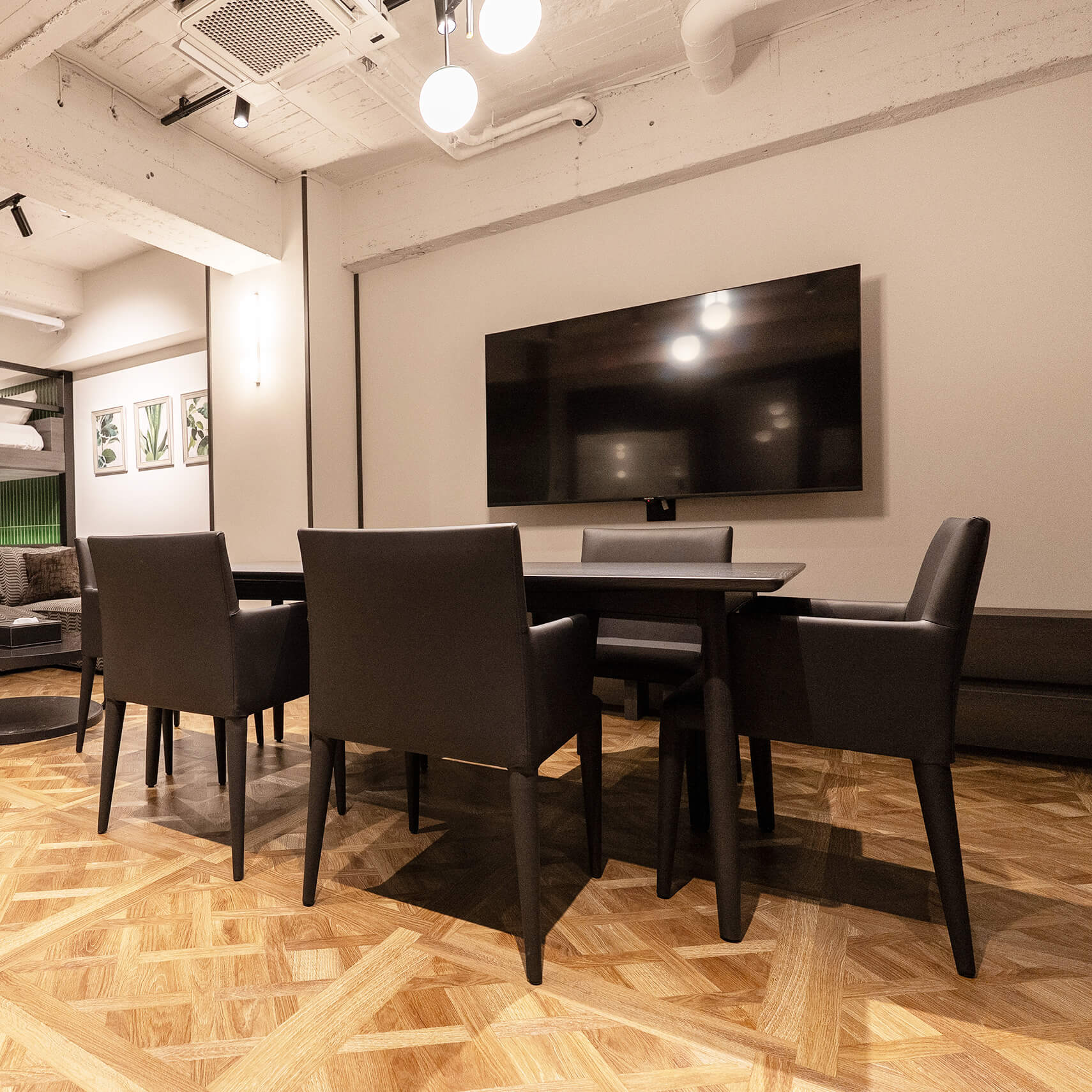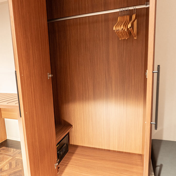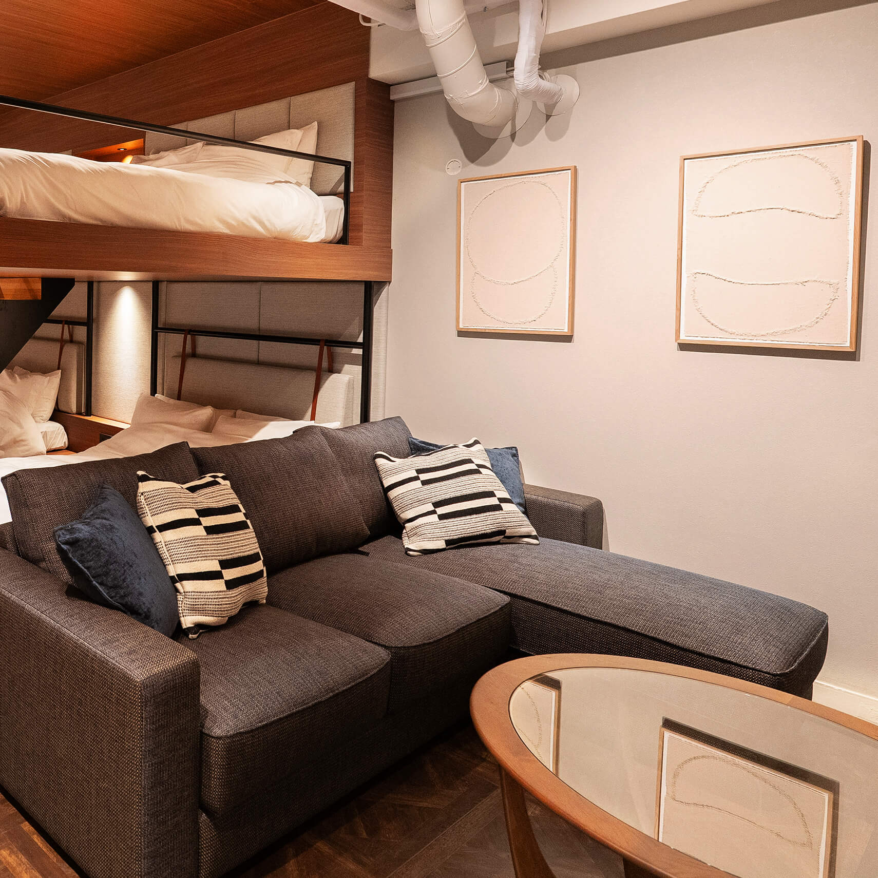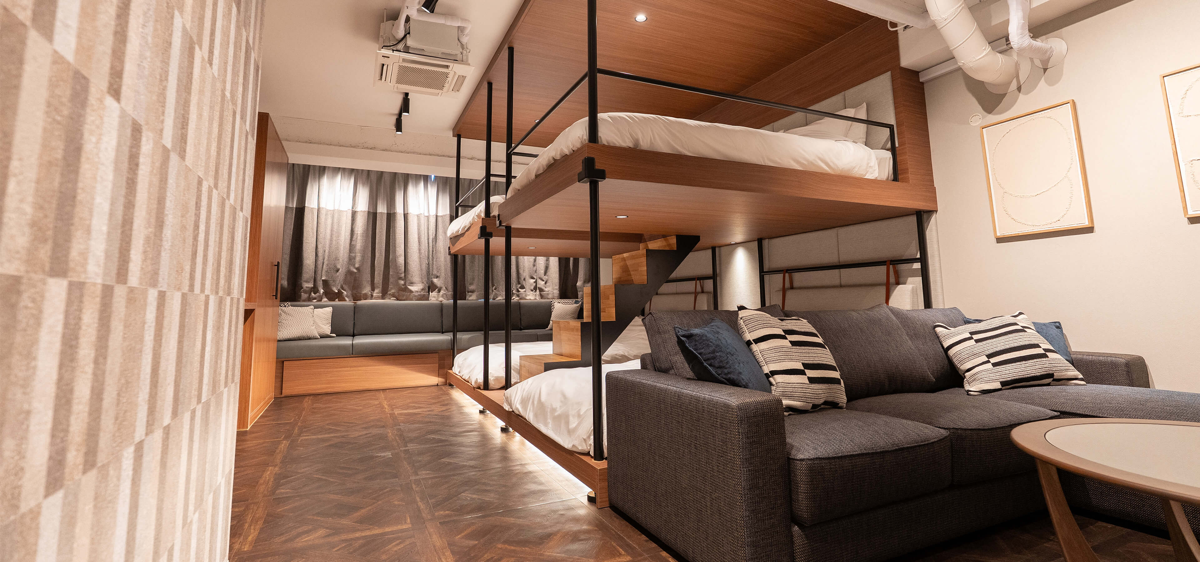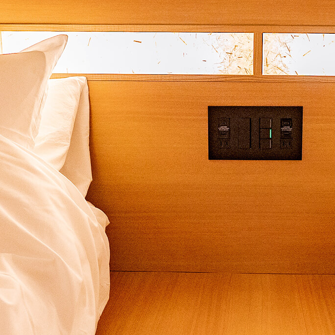 黒とブラウンを基調としたベッドやソファーは落ち着いた雰囲気で、自分の家のようにゆっくり過ごせます。
