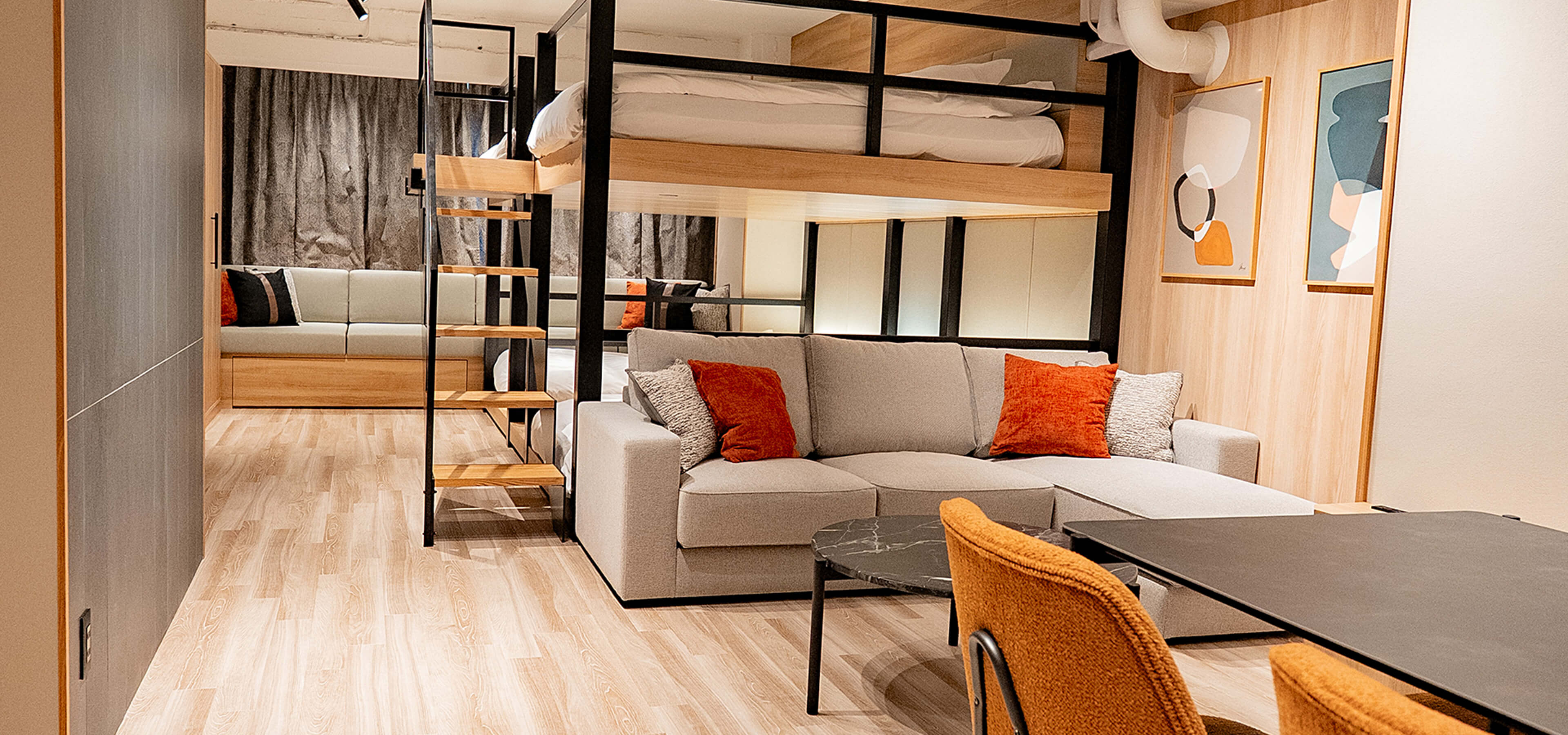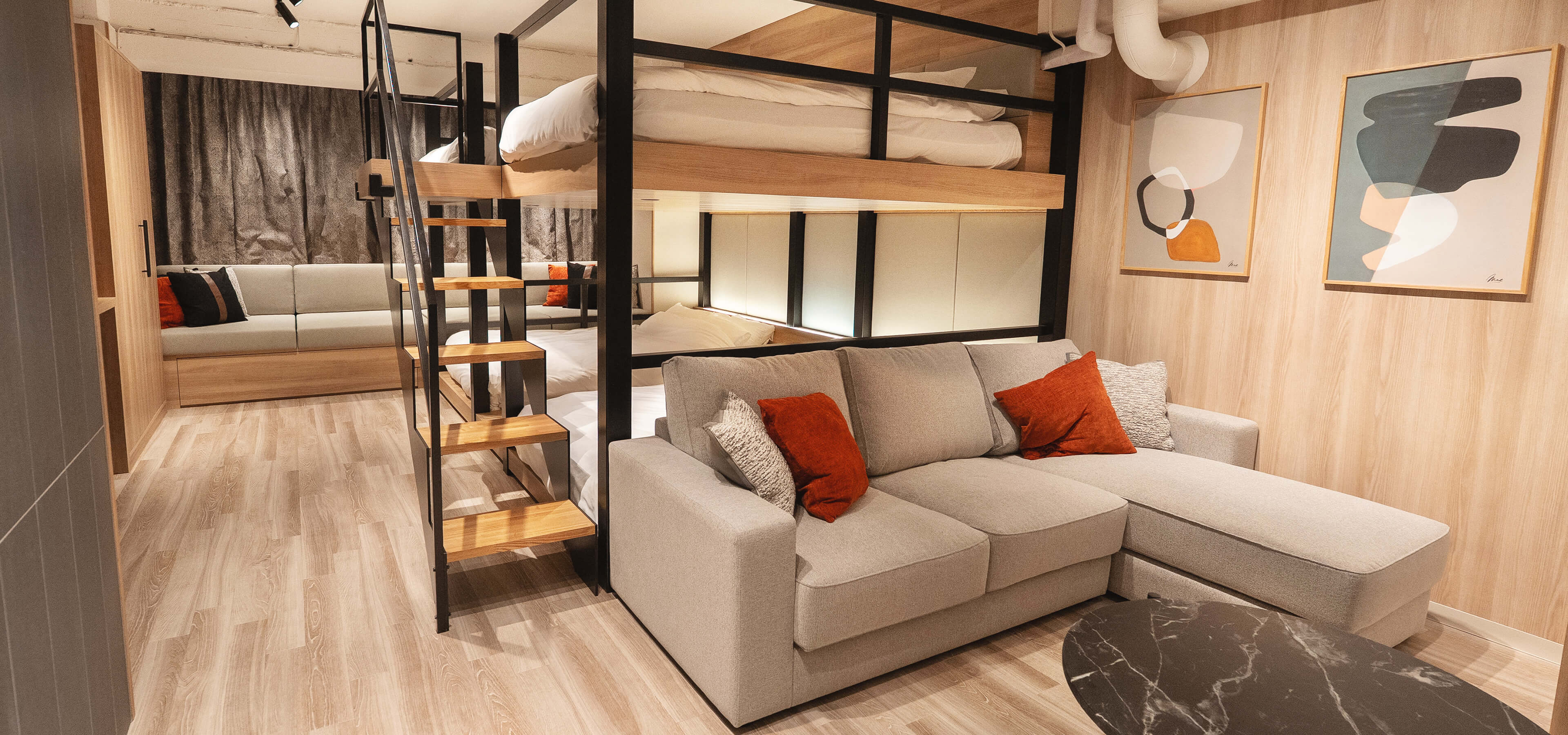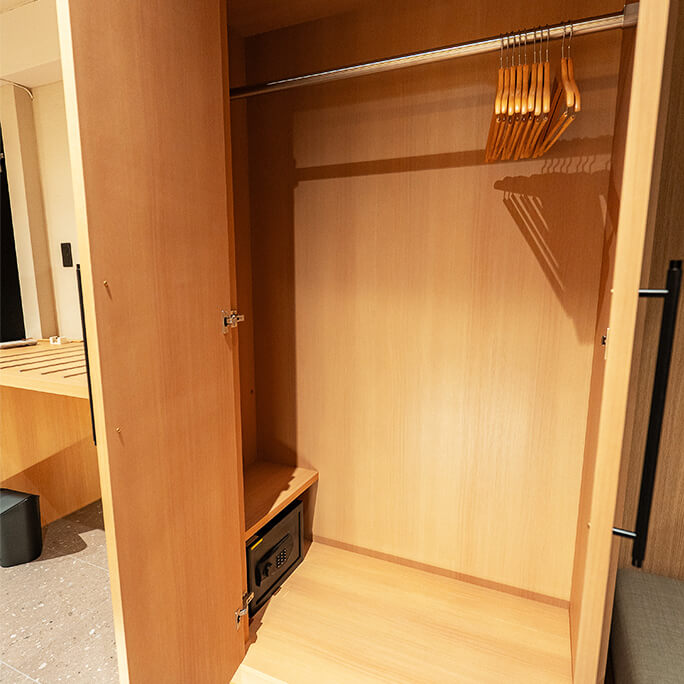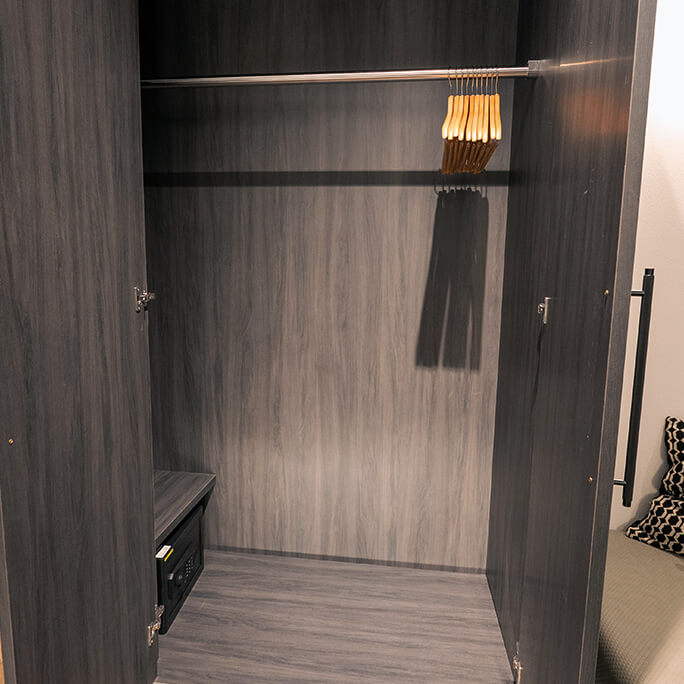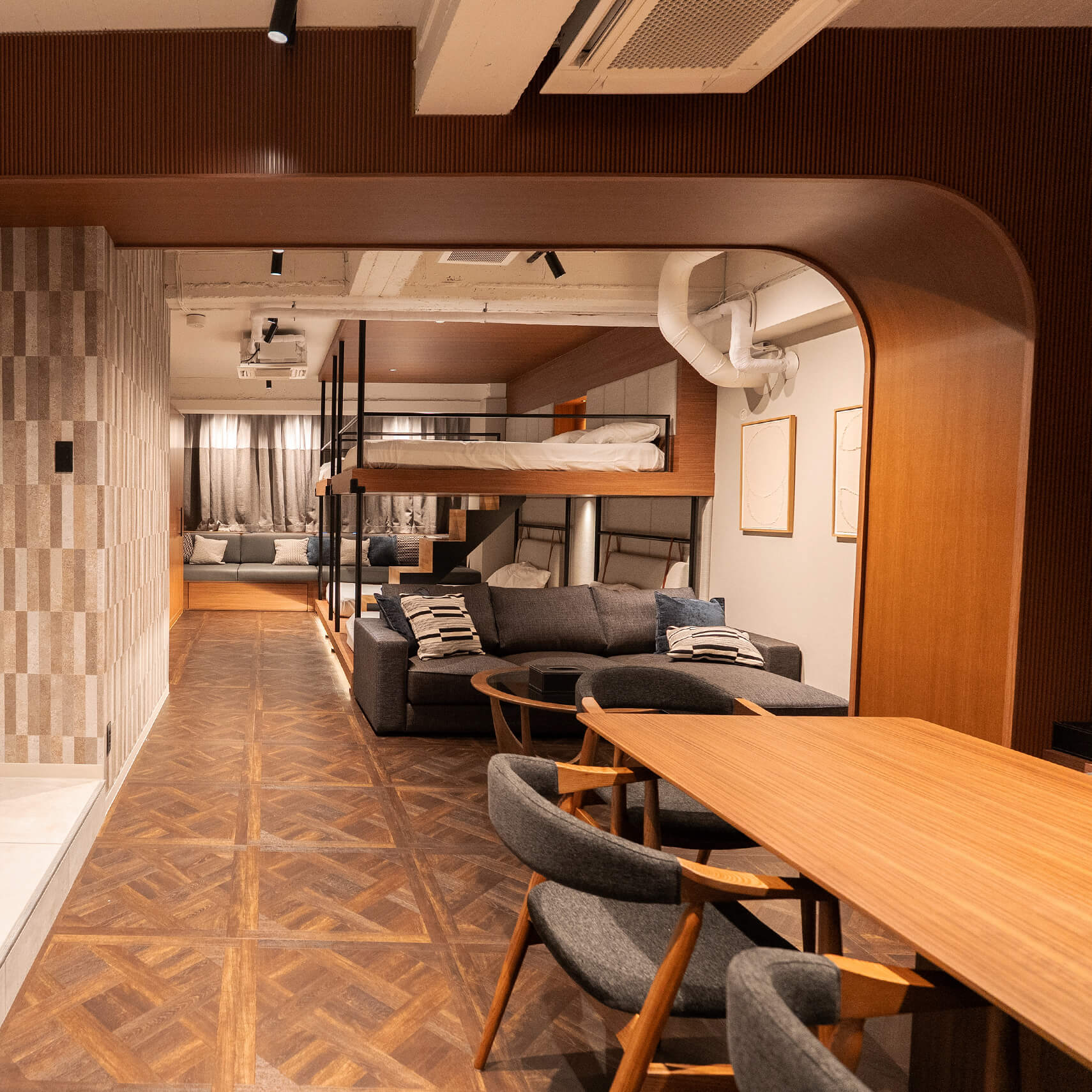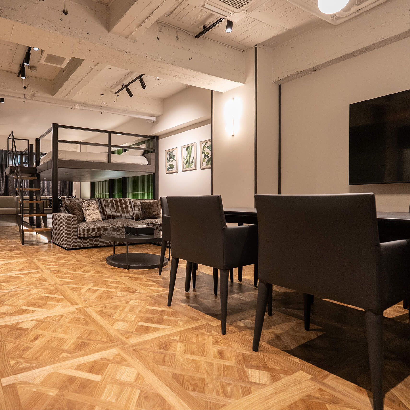 黒とブラウンを基調としたベッドやソファーは落ち着いた雰囲気で、自分の家のようにゆっくり過ごせます。