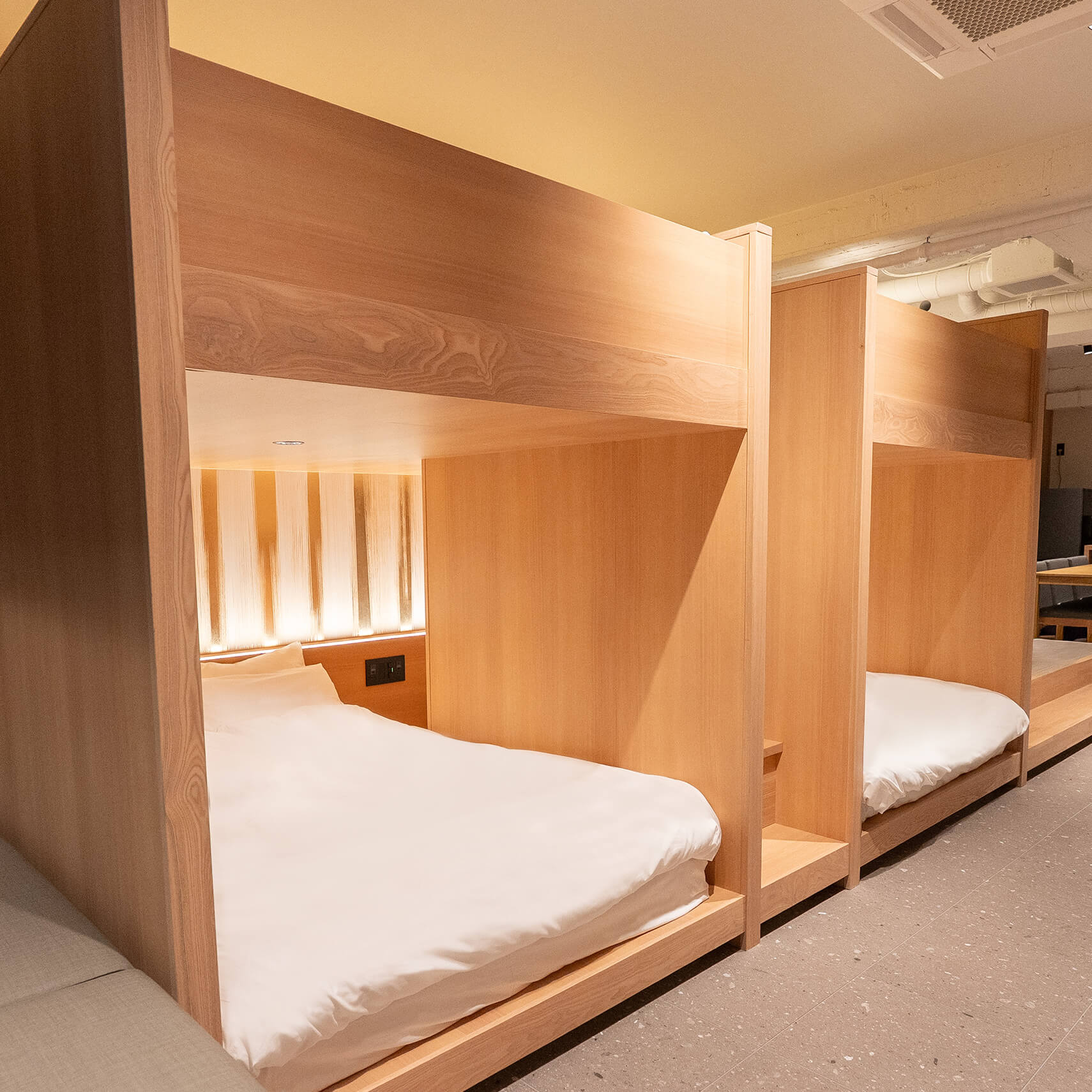 ベッドはダブルが4つ。見た目がスマートで大人っぽいデザインです。