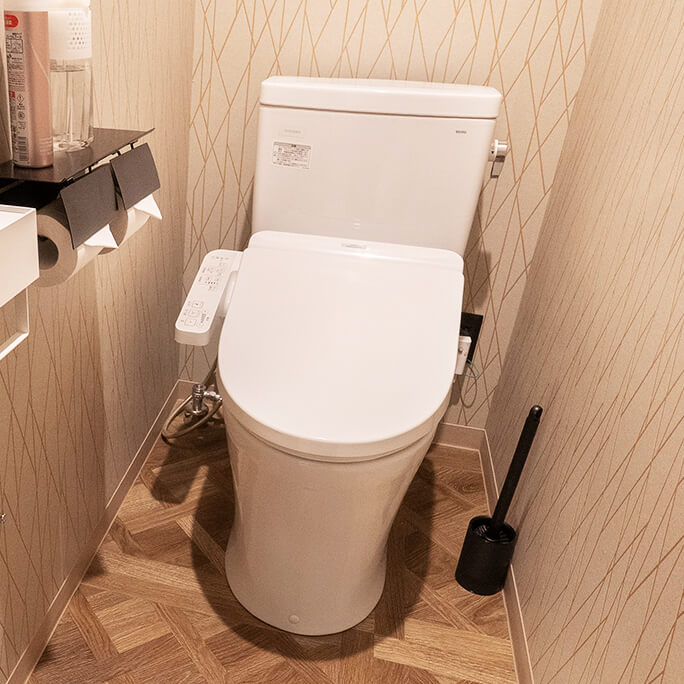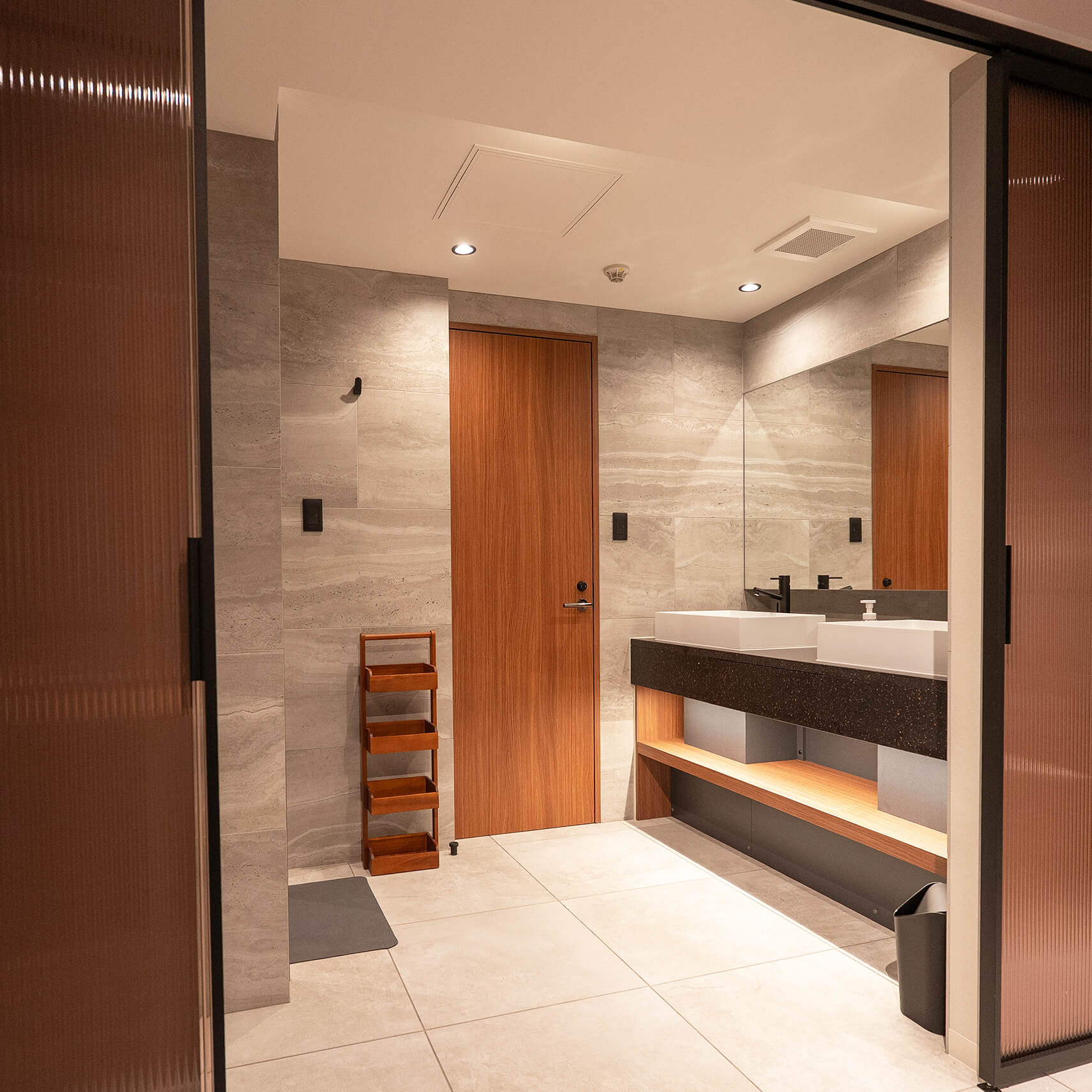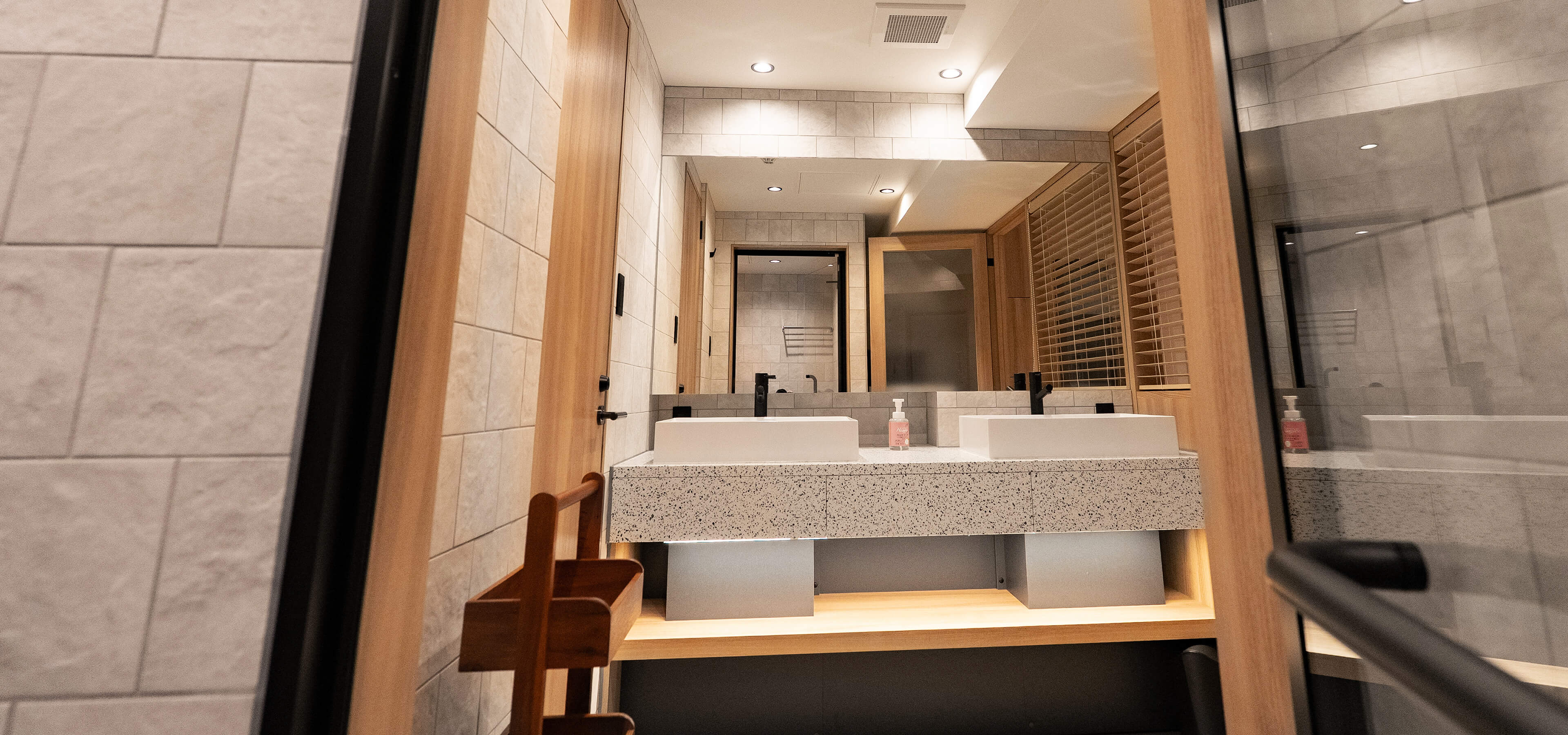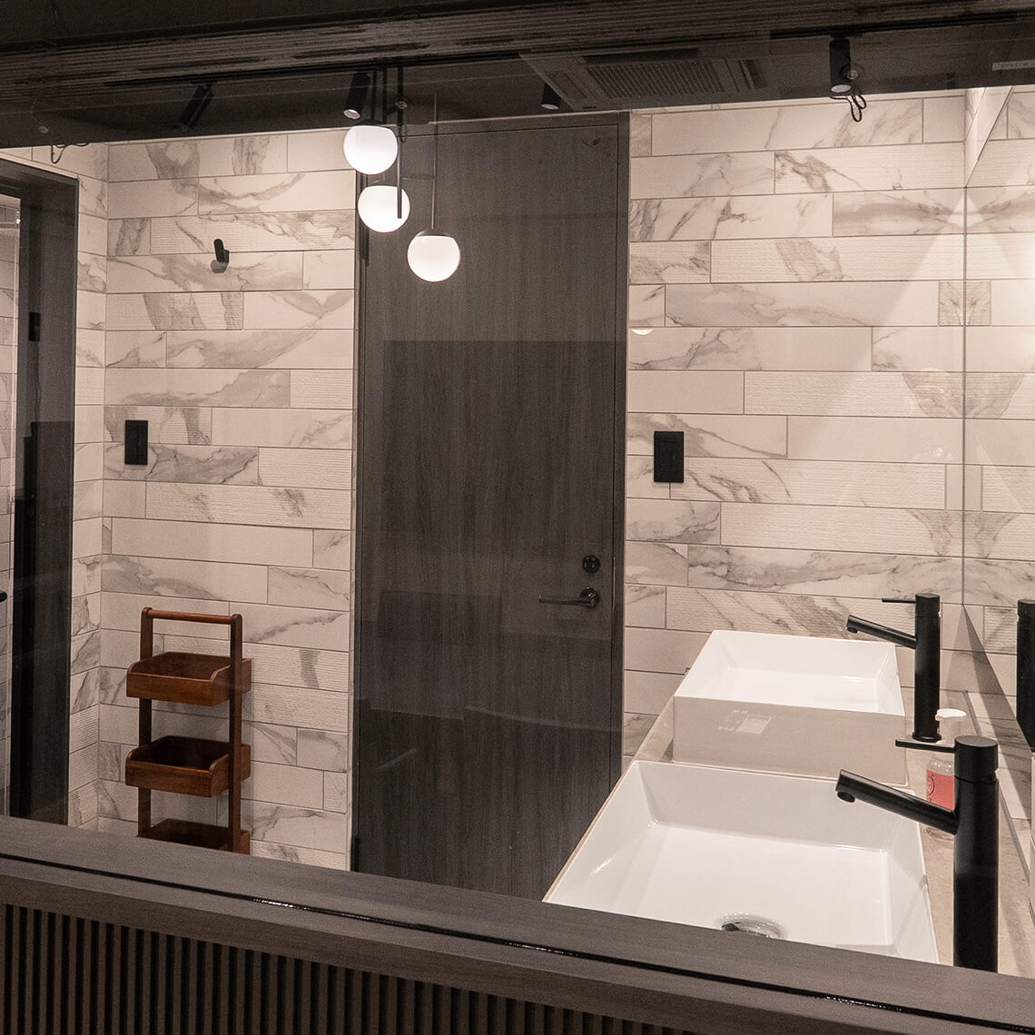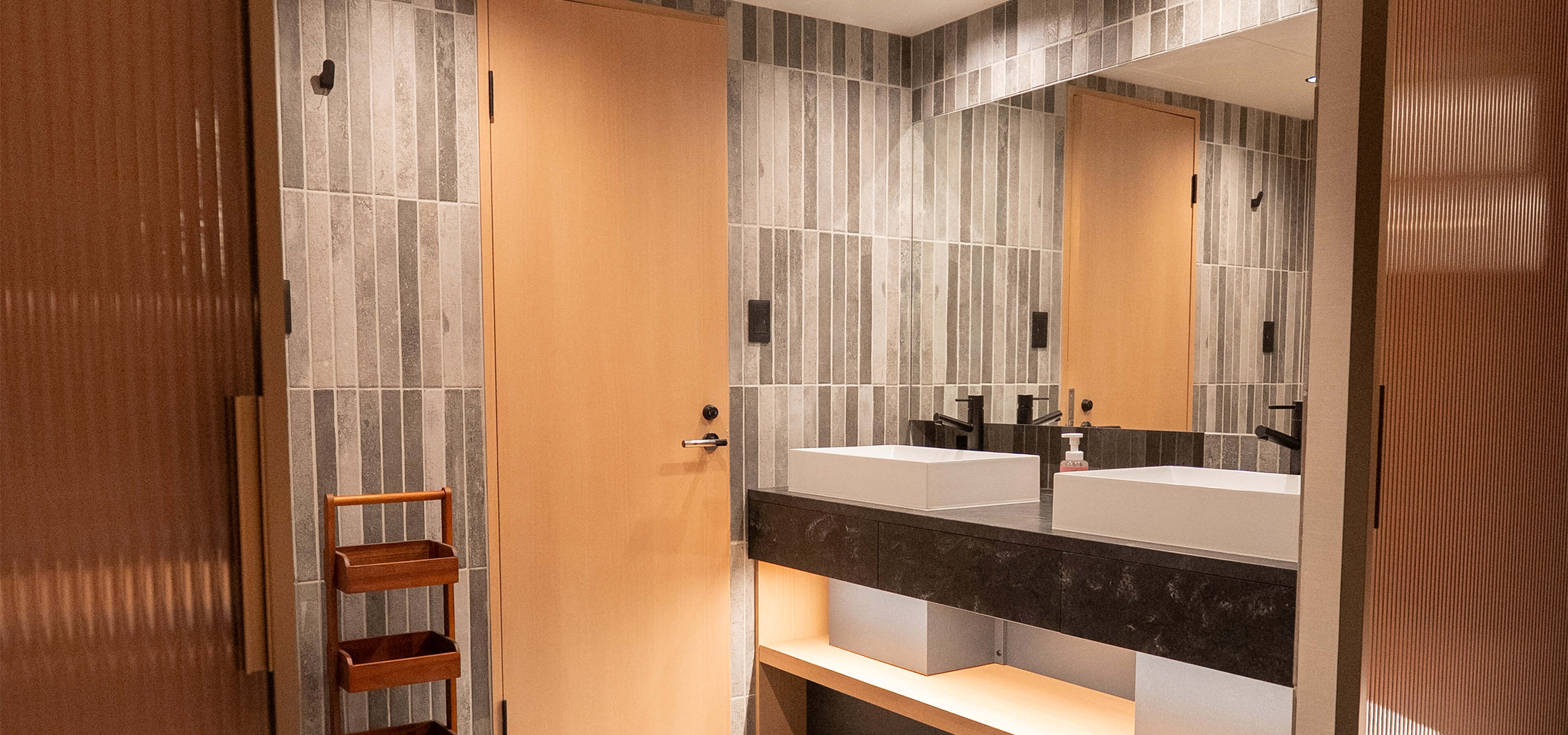 洗面所は広く、トイレは個室になっております。洗面台が2つあるので、大人数で泊まっても混み合わず快適です。