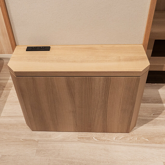 ベット横には和室のような座敷のスペースを作り、ゆっくり寝転がったり足を伸ばしたりできるようにしています。