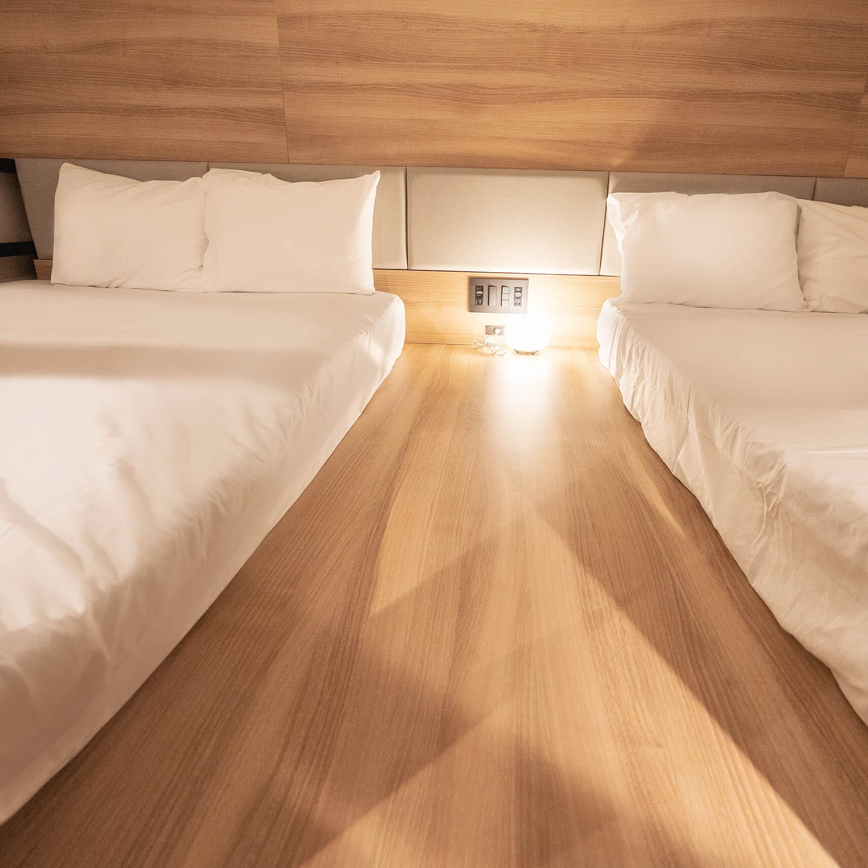 ベッドはダブルが4つ。ダブルなので広々としており旅行の疲れを癒やしてくれます。